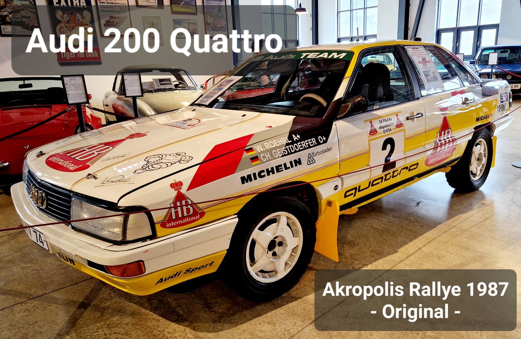 1987 fuhr Walter Röhrl diesen Audi 200 Quattro Gruppe A als letztes offizielles WM Rallye Auto bei der Akropolis Rallye. Das Fahrzeug war lange Zeit nicht mehr auffindbar bis es die Firma Quattros GmbH wieder entdeckt hat und nach über 30 Jahren nach Deutschland zurück geholt hat ...